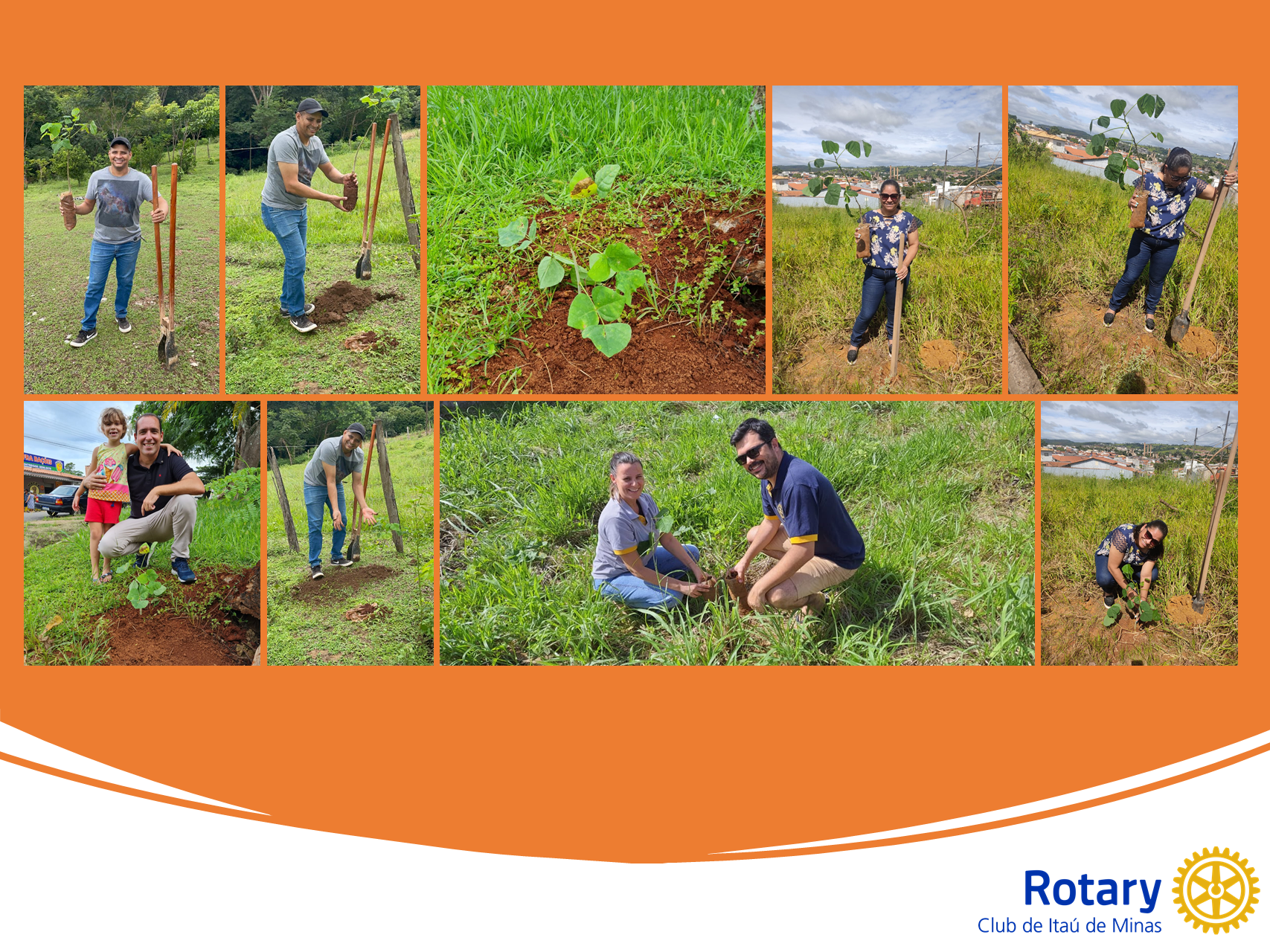 O Rotary Club de Itaú de Minas contou com seus associados para comemorar o Rotary Day, realizando o plantio de arvores.